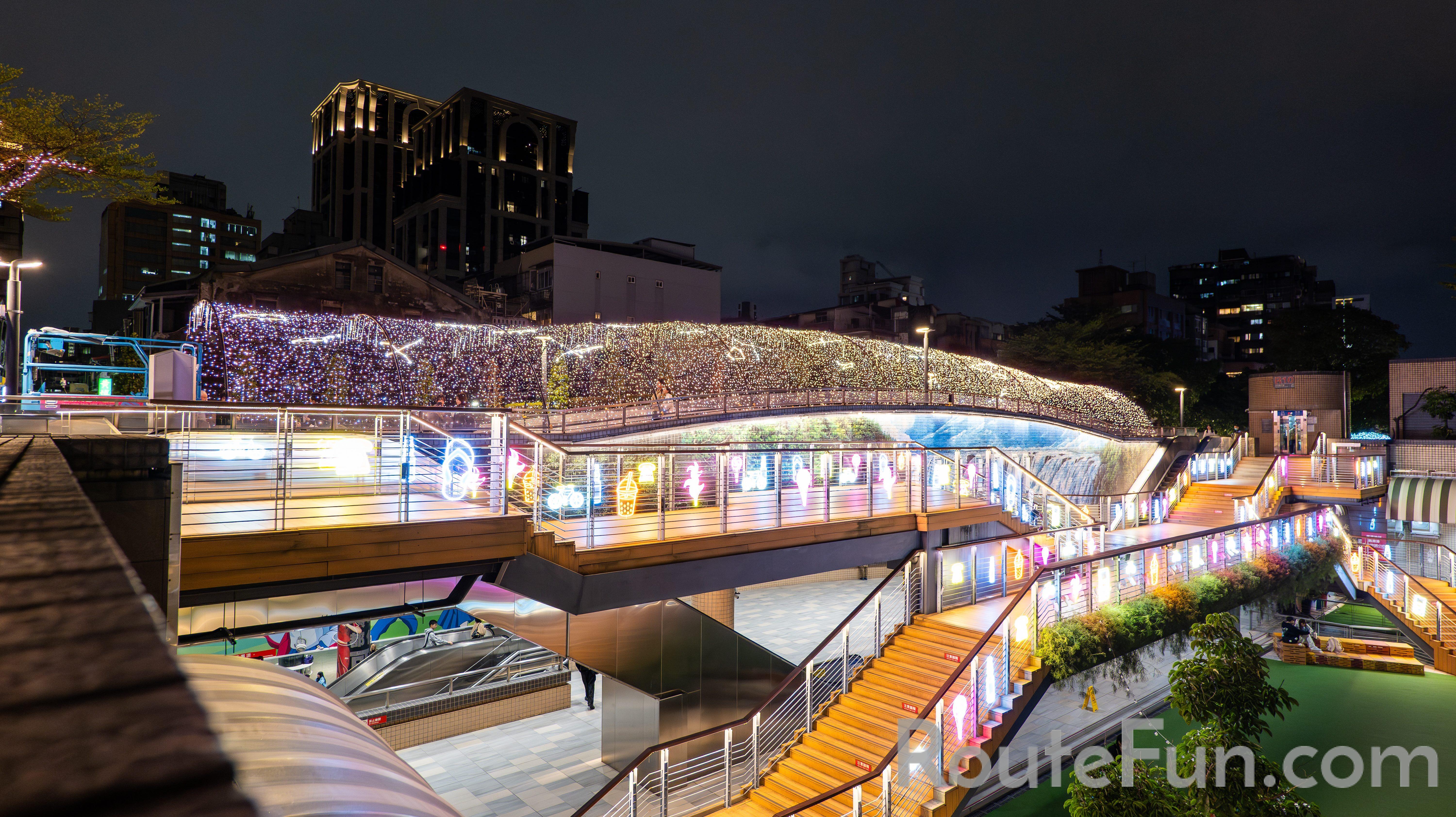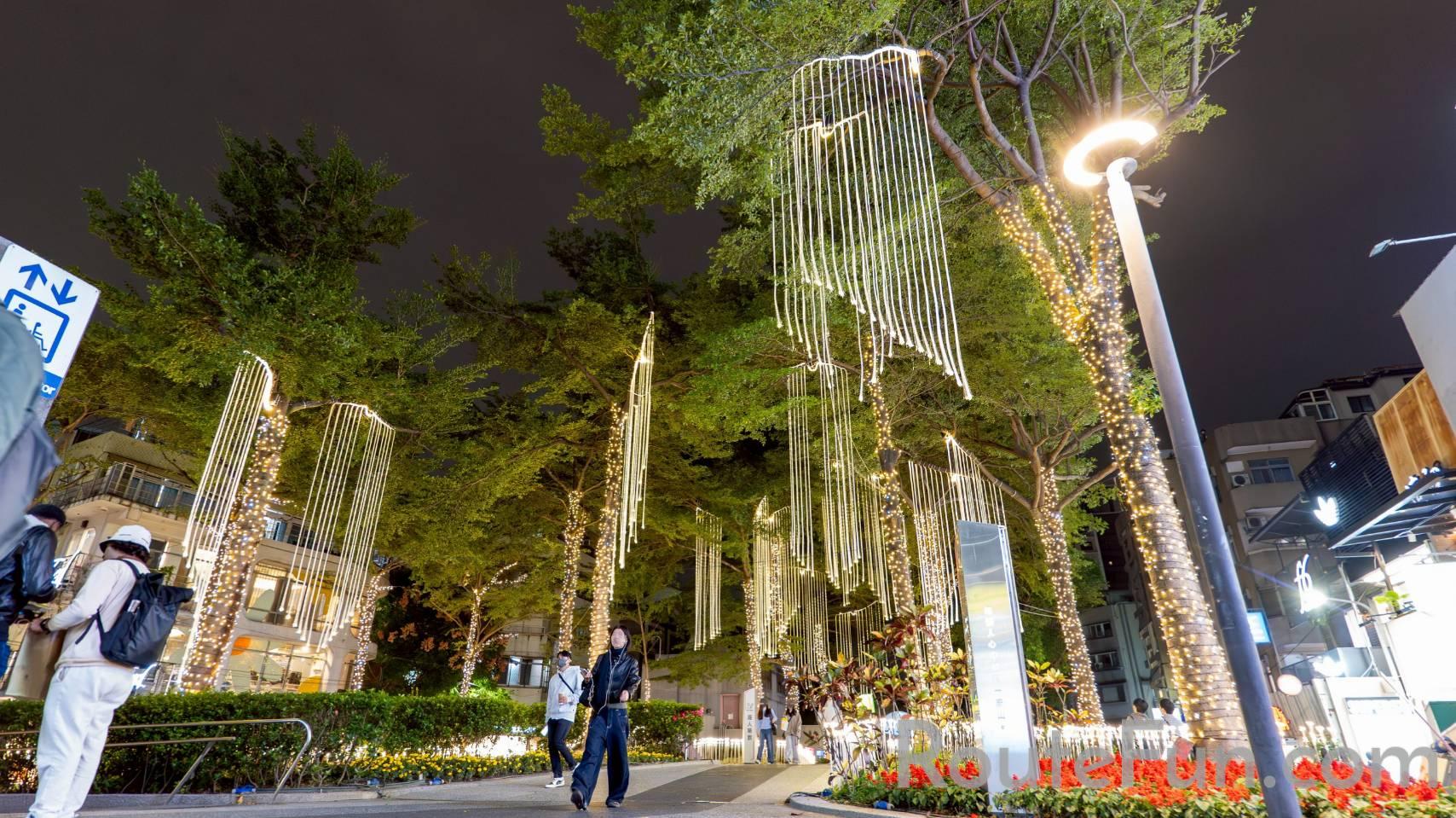「2025閃耀!捷運光聚落」點亮歲末的臺北!臺北捷運公司打造全長近1公里的夢幻光廊,串聯心中山線形公園、心雙連線形公園,更首度將展區延伸至心中山線形公園南段。心中山線形公園北段以「立在光年」為設計主題,將光化作星辰的祝福,傳遞勇氣與希望。位於雙連站至中山站間的長廊化為星河隧道,用點點星光交織出夢幻氛圍。可愛的人氣捷米化身樂手現身,絢麗的霓虹線條與電光符號,讓整個夜晚搖身一變,成為一場熱力四射的搖滾派對。童心花園盡頭的捷米城堡,彷彿童話世界的入口。「拾光森林」,溫暖的光影在樹影間流動。河馬里特、白鯨莫比分別佇立在公園一角。心雙連線形公園,溫暖的燈光沿著步道灑落,跟著捷米的指引,踏上溫暖旅途。心中山線形公園南段位於中山站1號出口至R5出口間範圍,以七彩燈條、白色、黃色球形燈飾及玫瑰金燈串,打造出光影交織的森林光廊。舉著酒杯的捷米愜意地躺在藍色波紋瀑布上,享受寧靜的夜間森林浴。