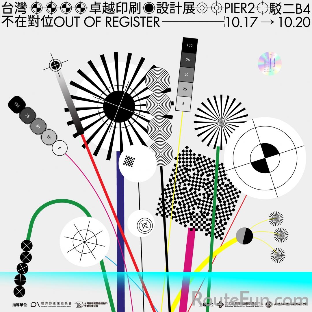 「對位」是印刷中確保畫面精準的關鍵技術,而「不在對位」意味著偏移或錯位。但在印刷設計展中,轉譯成這些印刷記號,脫離輔助角色,走入畫面中心成為主角。讓「不在」不代表失誤或瑕疵,而是一種「跨域」的設計語言的轉化。