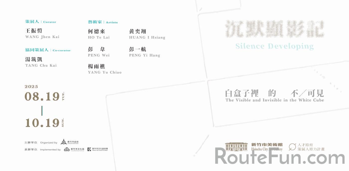 「沉默顯影記-白盒子裡的不/可見」由獨立策展人王振愷、湯筑凱共同策劃,邀請彭韋、彭一航、黃奕翔、楊雨樵四位當代藝術家,並且搭配新竹市文化局典藏何德來的作品,展開白盒子空間的再詮釋。五位藝術家分別透過低限素描、文字書寫、觀念攝影、紀錄片、操演工作坊與民眾劇場等多重媒介,逐層揭露美術館中可見與不可見之間的拉鋸及流動。