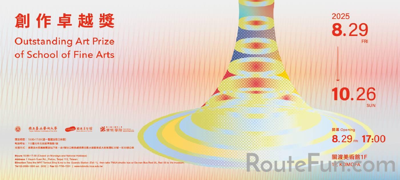 《2025創作卓越獎》由國立臺北藝術大學美術學院與關渡美術館共同主辦,為提昇學生創作與研究能力,並鼓勵參與具開放性與創造力的競賽展。本屆參選人數共計50人,特聘請校內外教師及專家學者,經初審及複審後選出9件作品,決審將選出首獎1名,於8月29日關渡美術館聯合開幕中公佈及頒獎。