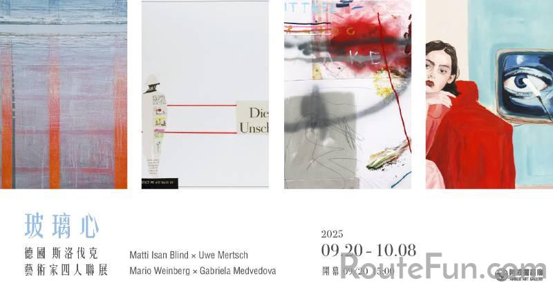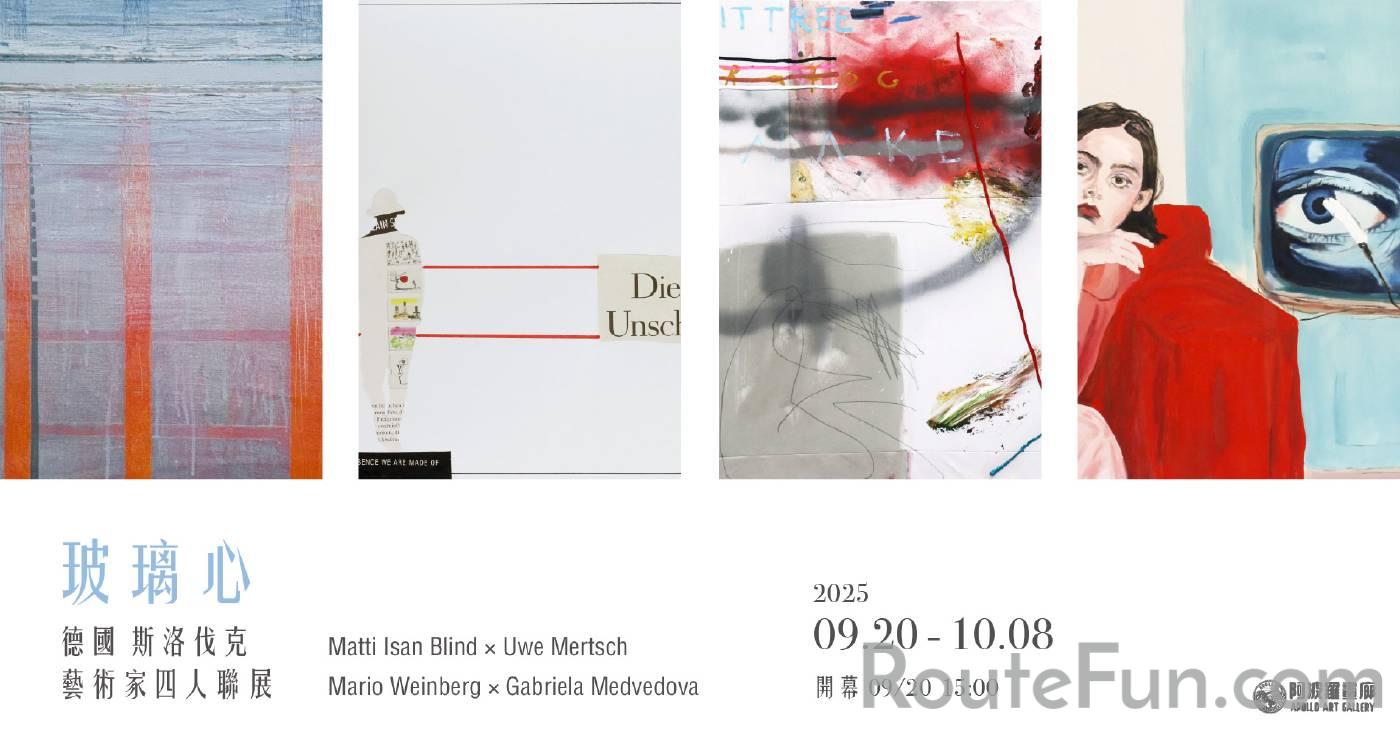 Uwe Mertsch運用拼貼的方式,透過紙張撕裂,搭配繪畫的點綴,重新建構成新的面貌,簡單的線條和畫面,表現簡單即是美的日常生活美感。Gabriela Medwedova的作品猶如窺探光的縫隙,探究光的各種面貌,利用壓克力顏料捕捉光型態和色澤,線條間展露各種色彩,彼此相互輝映。Matti Isan Blind以油彩描繪生活周遭的場景,帶有超脫現實的元素,畫中人物的神情,若有似無地透露言外之意,引領觀者進入異想世界。Mario Weinberg利用油彩、噴漆、環氧樹脂等各種複合媒材,大膽嘗試抽象藝術無限的可能性,來回碰撞間,迸發出新的面貌,鮮豔的色彩和多元變化的線條交織下,使畫面具有豐富的層次感,帶來無比的想像。