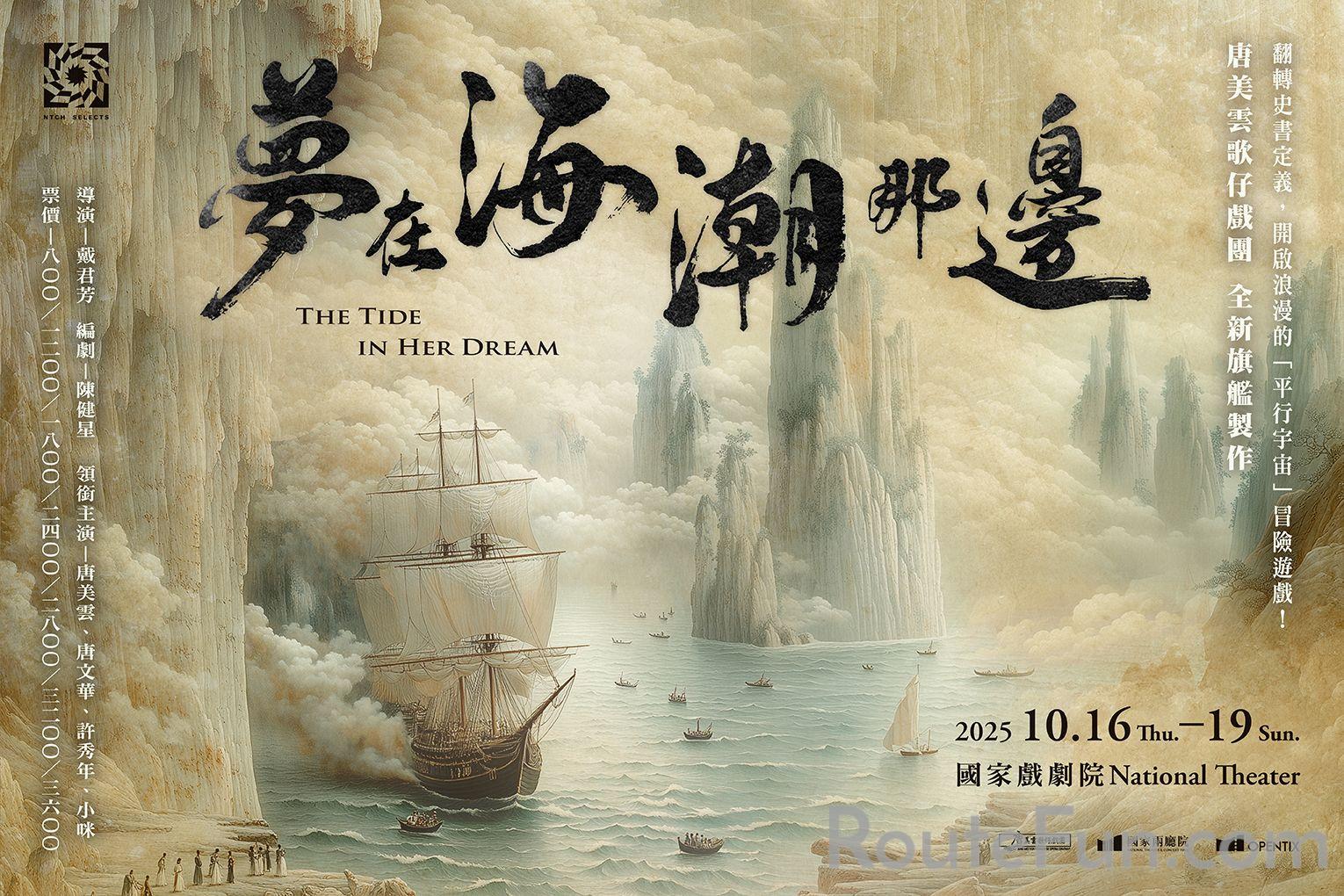 唐美雲歌仔戲團《夢在海潮那邊》將於10月16日至19日在國家戲劇院隆重上演。本劇大膽跳脫史實,將海賊、官府與天地會三方勢力推向舞臺核心,勾勒出一場暗潮洶湧的權力角逐;同時也刻畫情感世界的糾葛,愛恨交織、撲朔迷離,揭示在風雲變幻中依然無法逃避的人性與真情。故事主角「蔡牽媽」是最令嘉慶皇帝頭疼的「海賊女王」,她不再只是丈夫背後的輔佐者,而是智謀過人、目光遠大的領袖。她抗拒清廷招安,甚至鼓勵蔡牽攻佔臺灣,自立為王。為了鞏固勢力,她女扮男裝潛入艋舺,卻意外與神祕富商李啟明漸生曖昧,掀起情感與權謀交織的漩渦。演出全長約170分鐘,含中場休息20分鐘。演前導聆:每場演出前30分鐘於國家戲劇院大廳。臺灣臺語發音,中英文字幕服務。錄影場:10.18(SAT.)口述影像場:10.19(SUN.)