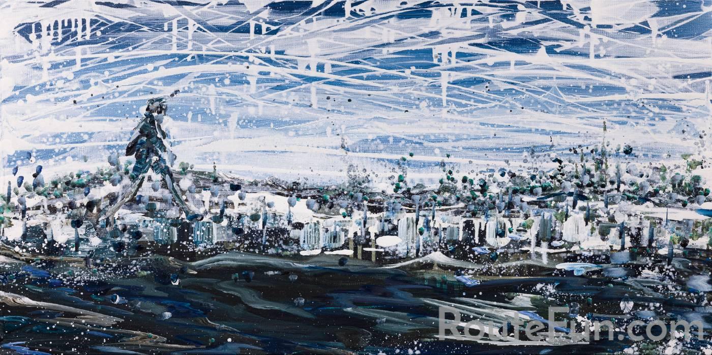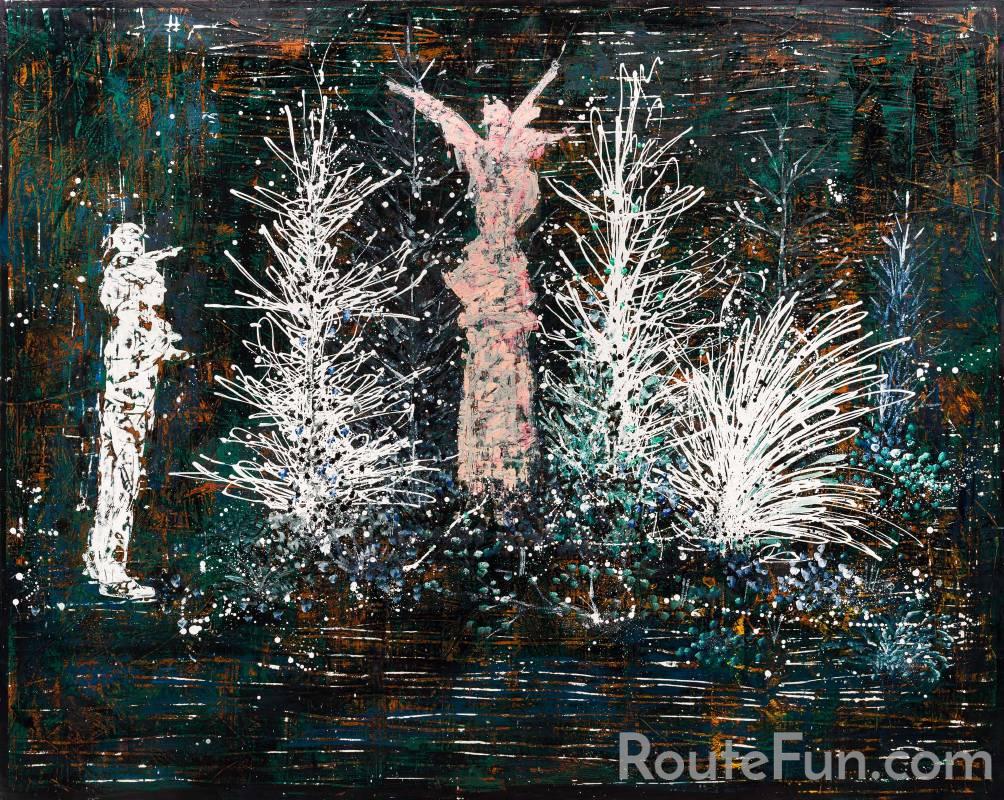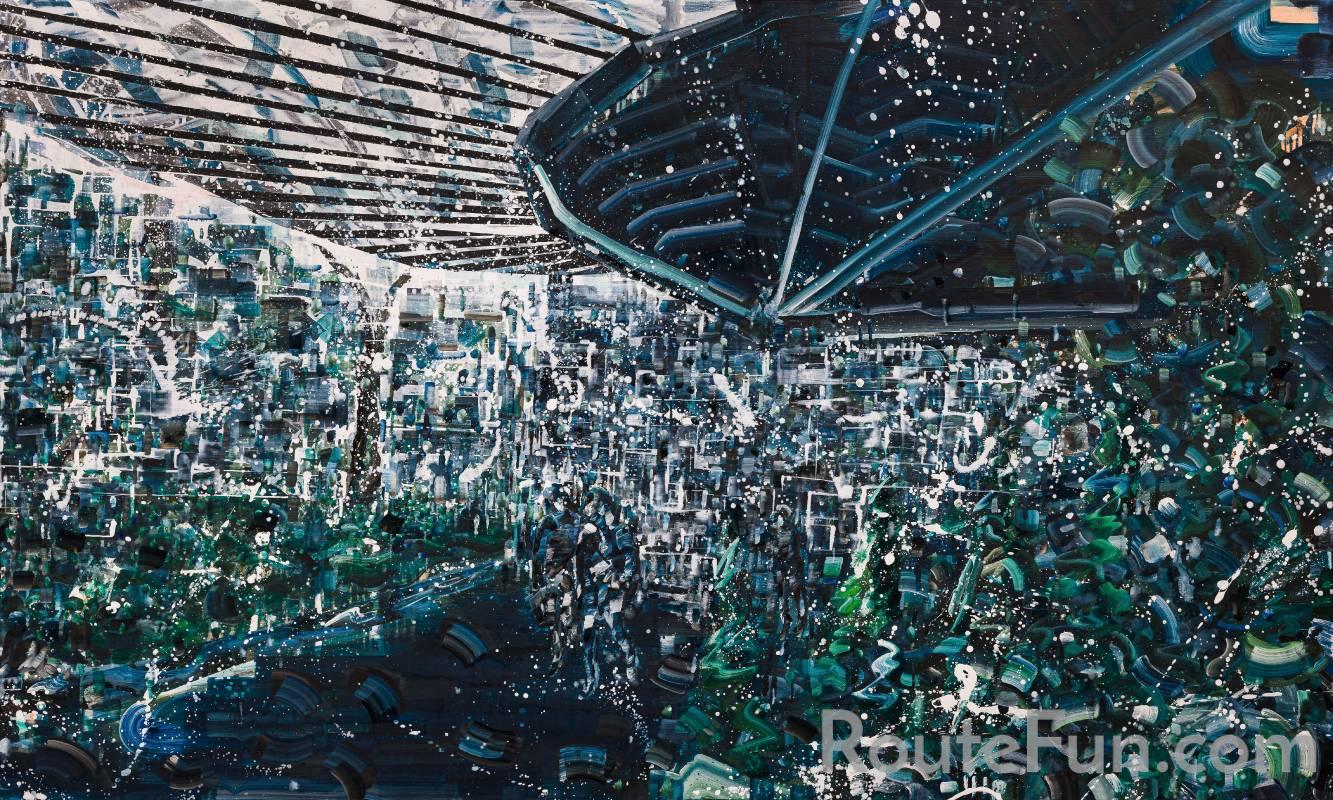藝術家邱建仁以隨手記錄日常與旅行中的影像為基礎,透過複雜多樣的筆觸,創造了一個關於城市、記憶與流動身體的對話領域。展名「天若有情」引用唐代詩人李賀的詩句,抒發了人們在流變的時空中,對世事無常與易逝的感嘆。畫布中潑灑奔流的顏料堆疊出時而破碎時而交連的複雜肌理,讓影像敘事不再只是決定性的瞬間,更是反映了觀者匯流其中的思緒片斷與豐沛情感。