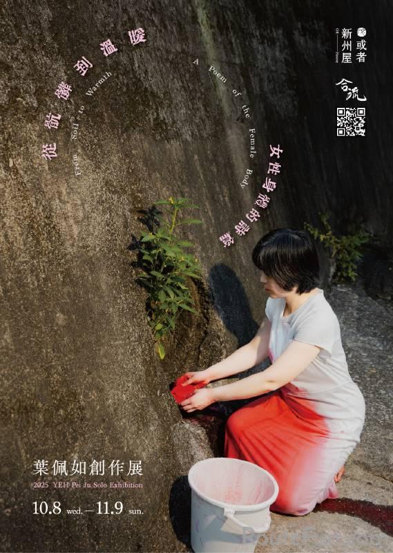 展覽名稱:《從骯髒到溫暖:女性身體的詩篇》 2025葉佩如創作展。展覽時間:2025 年 10 月 8日(三) ~ 11 月 9 日(日)。開幕茶會|10/12 (日) 下午2:00。藝術家現場導覽|10/19、10/26、11/2、11/9 (日) 下午2:00。本展以女性身體與環境空間的對話為核心,透過《垢圖》與《紅色是最溫暖的顏色》,展開一場從「骯髒」到「溫暖」的詩意蛻變。《垢圖》以鋼刷書寫女性的語言,突破「乾淨」標準的桎梏,在男性主導的水墨語境中,刻劃出屬於女性身體的當代記憶。《紅色是最溫暖的顏色》則以行為與影像擁抱月經,反抗文化污名,透過紅液與身體的語言,邀請觀者重新理解身體的溫暖連結。展覽亦引入「南門溪」意象,將身體排泄與城市生態並置,喚起對身體與環境平權的共同覺醒。