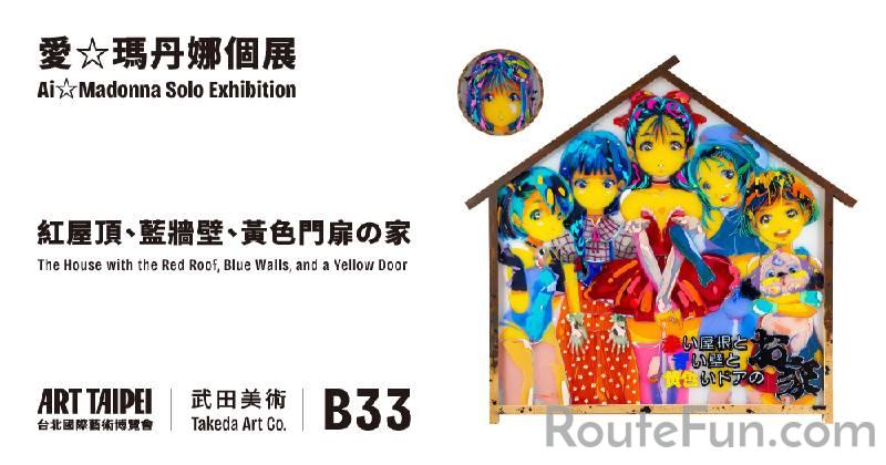 武田美術將於2025年台北國際藝術博覽會推出日本藝術家愛☆瑪丹娜的全新個展《紅屋頂、藍牆壁、黃色門扉の家》。這次展覽透過藝術家細膩的筆觸與光澤的色彩,展現日常與記憶交錯的「家」之風景。展位現場將呈現藝術家的大型立體作品與繪畫原作。10月23–25日每日14:00–16:00,愛☆瑪丹娜將於展位B33舉行現場即席創作活動,現場創作約兩公尺高的作品,讓觀眾親身感受畫面誕生的瞬間與能量。
