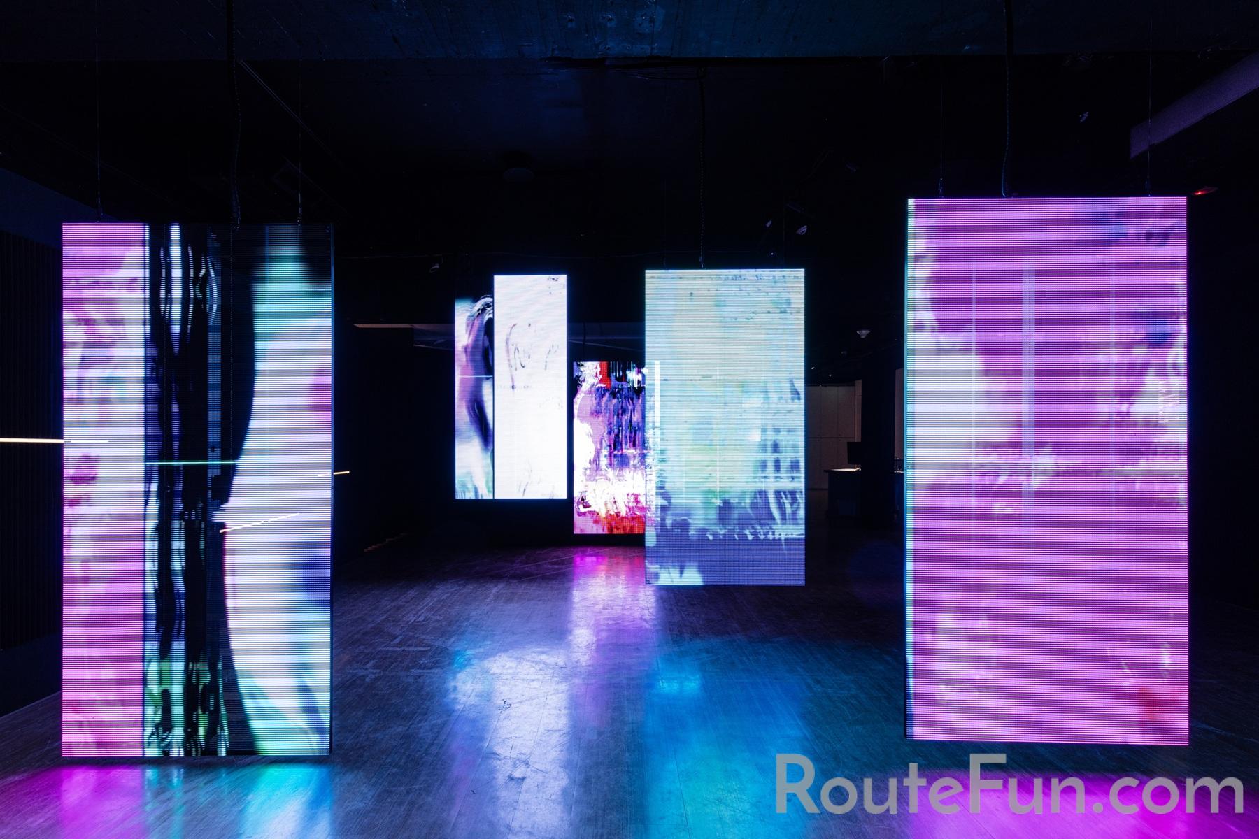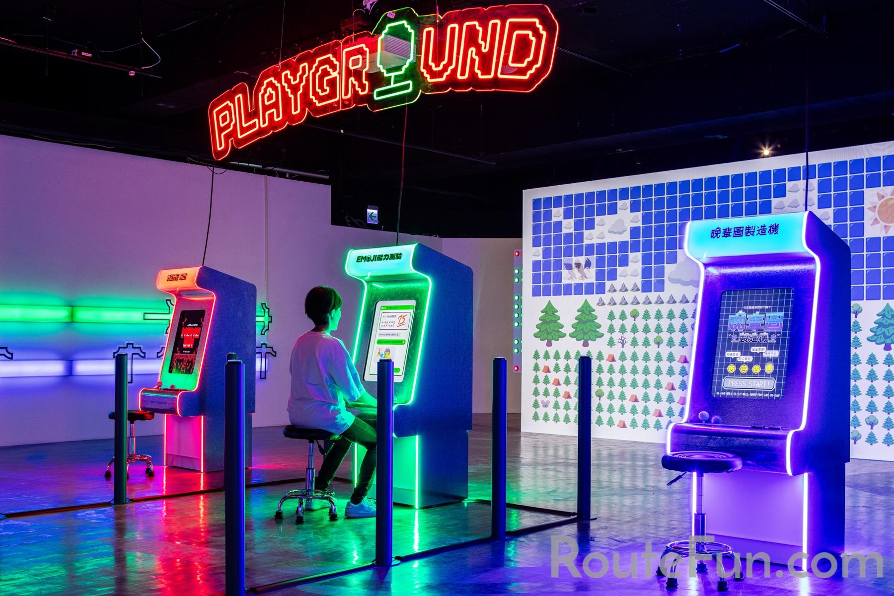 展覽從一樓「虛實邊界-登入中」由藝術家謝昕妮結合跨世代電視螢幕與即時投影,創造觀看與被觀看交錯切換的奇妙場景;三樓「感官系統-重啟中」,則由陳昱榮以演算法與感測數據生成的流動光影、吳修銘用聲音轉化的繽紛舞台,以及重構街區聲響的《府中ASMR》帶觀眾將穿越黑暗廊道,迎來視聽超感官饗宴,逐步喚醒身體的敏銳感知。四樓「情緒訊號-解碼中」,打造《社群語彙遊樂場》,將迷因與貼圖轉化3款限定遊戲機,探討社群文化下,各種情緒如何透過獨特語彙傳遞。最終進入五樓「身分模組-運算中」則聚焦數位時代的自我建構,陽春麵研究社的創作邀請觀眾透過自拍與搜尋紀錄,體驗數據標籤過程,並重新思考「我是誰」的提問。