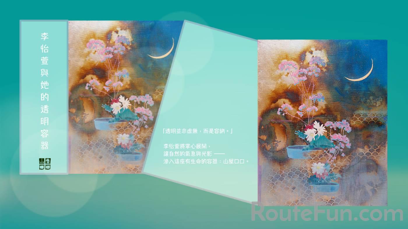 本展企圖以李怡萱的敘事視角,將「山屋口口」演化為盛滿藝術的「容器」,如同一座孕育創作的「溫室」般,既能保護,也能揭示;結合鄰近芝山岩及外雙溪的自然地景,構築一場與自然地景流動,及觀者的身體感知交織的透明藝術經驗。