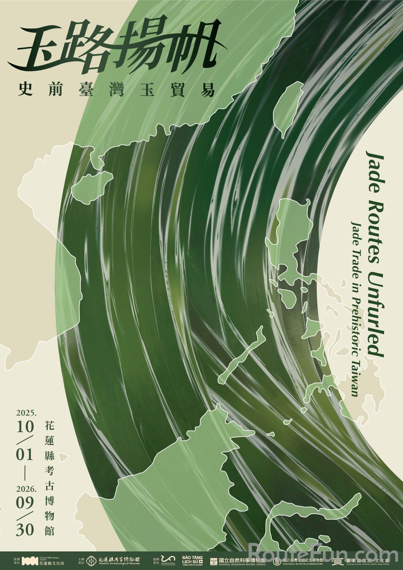 花蓮豐田孕育出臺灣玉的綠色礦脈,千年前,它已是史前人群的重要資源。沒有金屬器的時代,工匠用石英片岩、竹管與石英砂,一點一滴切磨鑽磨,把玉石製成工具與耳飾、手環等飾品。支亞干與荖山遺址出土的玉料與半成品,宛如重現繁忙的工坊景象。玉器形制日益多樣:圓形、方形、細長形耳飾,乃至稀有的蛙形玉飾、人形耳飾,展現出臺灣獨有的工藝技術與文化意涵。玉石不僅流通於島內,更隨人群跨越海洋,抵達菲律賓、越南、泰國,在當地被再製成符合流行的器物。臺灣玉因此成為跨文化交流的橋梁,印證了早期人群的航海能力與文化互動。今日的科學研究與考古調查,讓我們逐步拼湊出玉器背後的故事。不同時期的人,對同一種玉材有不同的用途和詮釋,但都源自對自然的觀察與運用。從山林礦脈到海洋彼端,臺灣玉承載著跨越千年的文化航程。誠摯邀請您走進花蓮縣考古博物館,一同見證這段連結臺灣與世界的故事。