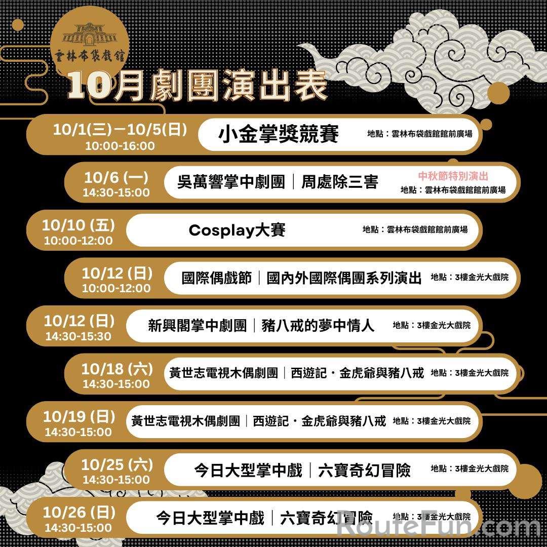 演出日期:10/1(三)~10/5(日)、10/6(一)、10/10(五)、10/12(日)、10/18(六)、10/19(日)、10/25(六)、10/26(日)
