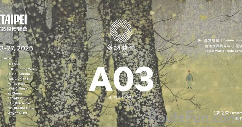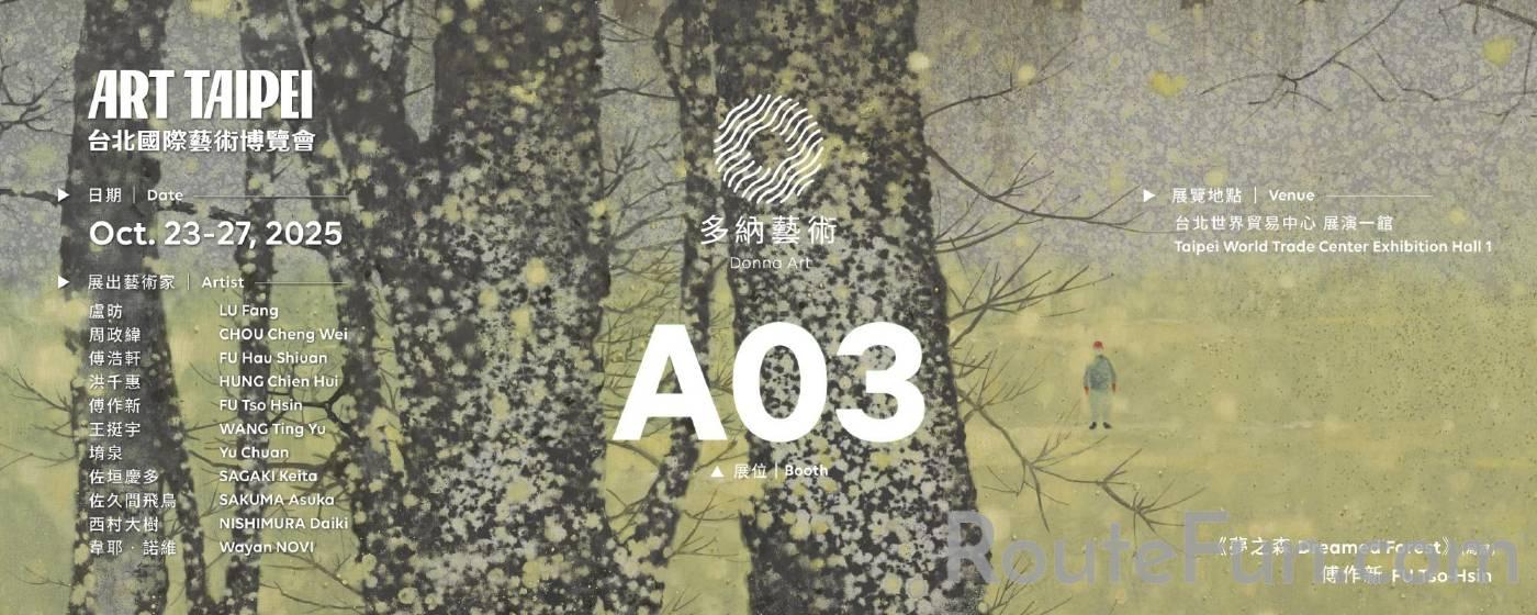 多納藝術將第八度參與台北國際藝術博覽會,首次以 108平方米大型展位華麗亮相,攜手十一位國內外優秀藝術家,呈現繪畫、雕塑與跨媒材的多元創作,象徵畫廊持續拓展國際視野與專業能量。本屆展覽將雲集 盧昉、周政緯、傅浩軒、傅作新、王挺宇、洪千惠、張堉泉、西村大樹(日本)、佐垣慶多(日本)、佐久間飛鳥(日本)、韋耶・諾維(印尼),十一位藝術家的作品涵蓋油彩、水墨、絹印版畫、壓克力及雕塑,題材從山水風景到宇宙寓言,從文化符號的再詮釋到童趣的視覺想像,構築出跨文化、多元風格的當代藝術盛景。台灣藝術家周政緯以細膩筆觸描繪大台北地景,將自然景觀與城市視角並置,開啟人與環境的感性對話。洪千惠則透過絹本水墨與礦物顏料交織出心靈棲居之境,作品流露靜謐而詩意的氛圍。盧昉則以新回望創作源頭,雖轉向花卉題材,但延續他長期關注的東西方視覺語言融合。他以古典油畫的層次結構與光影為基礎,融入東方繪畫的留白與空間節奏,使花朵在盛放與凋零之間展現生命寓意;畫面中蝴蝶的輕盈身影更成為時間與節奏的象徵。這幅作品不僅是形式上的實驗,也象徵在沉默與盛放之間誕生的新視覺語言。傅浩軒融合寫實與抽象,展現人與自然間的張力與平衡。傅作新 延續「浮光流影」系列,凝視光影與記憶的交錯,帶來細膩情感的流動。王挺宇 則以「星座系列」探索宇宙與詩意寓言,運用色彩與金銀箔材構築浩瀚景觀。張堉泉 的《花卉系列》以奔放筆觸與色彩描繪生命力的綻放與自然律動。國際藝術家,日本的佐垣慶多以漫畫筆觸拼湊經典圖像,重構東西方藝術史,營造當代視覺狂想;西村大樹 則以幾何線條與細膩筆觸,探索自然與情感的交織層次;佐久間飛鳥以雕塑語言捕捉生命脈動與時間痕跡,將空間轉化為感性對話的場域;來自印尼的韋耶・諾維(Wayan Novi) 則透過點描式繪畫構築夢境般的場景,洋溢童趣與想像力。