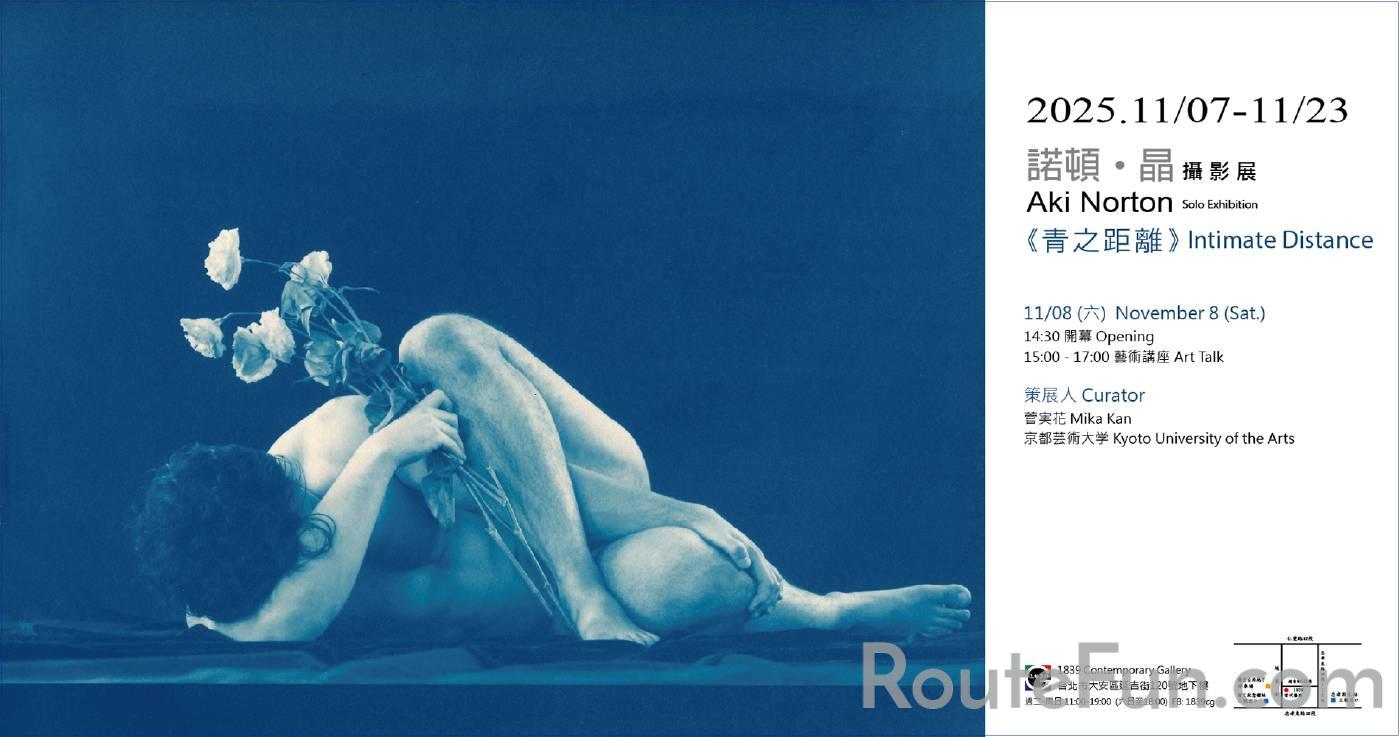 1839當代藝廊呈現- 再現19世紀古典藍晒技法「青の距離」將於2025年11月8日隆重開幕。攝影家Aki Norton透過古典氰版攝影技法探索身心關係。Norton 的作品曾在巴黎、美國和東京的畫廊展出,此次她運用19世紀氰版印相技術,呈現全新創作系列。展覽透過空靈的藍色影像,探討心靈與身體間的複雜關係,將人體形態轉化為感知與記憶的痕跡。展覽分為四個主題區域,創造一段從「起始・生成」經「探索・動態」、「呼吸・靜謐」到最終「空無」的冥想之旅。展覽於2025年11月8日下午2:30舉行開幕茶會,隨後3:00-5:00進行藝術家座談。展期至2025年11月23日。