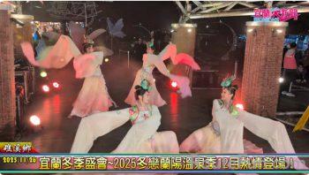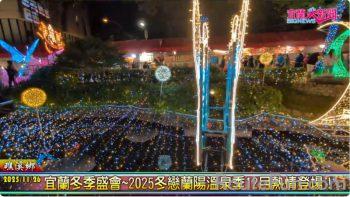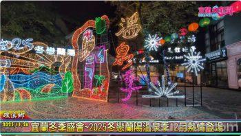 冬戀蘭陽溫泉季燈飾展示期間:2025-11-26至2026-03-03每天17:00-23:00。主燈以「蘭陽風景」及「山形縣花笠舞」為主題,運用相框式前後景設計。還有太平山杜鵑花、大白斑蝶、國蘭隧道等燈飾。