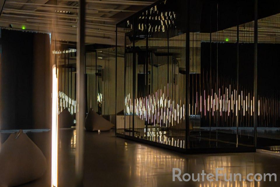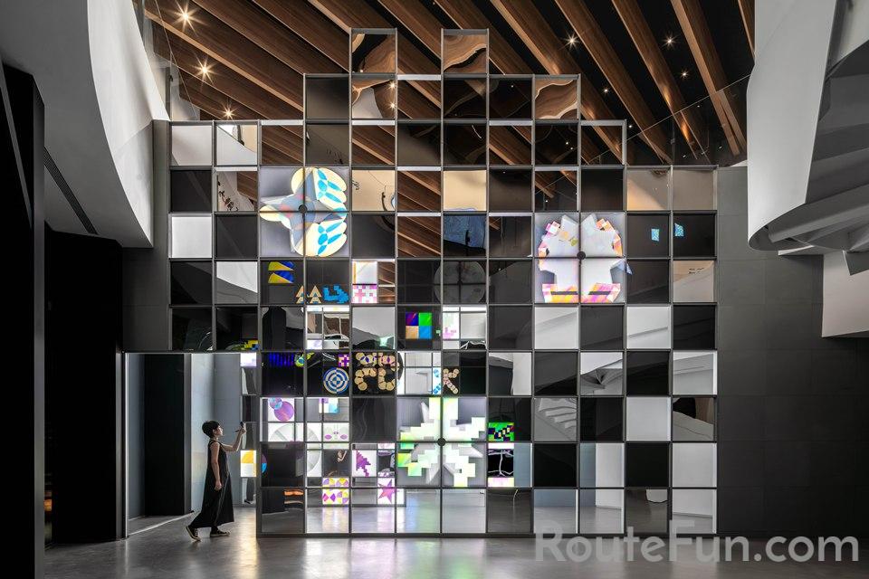 勤美術館 CMP INSPIRATION 邀請台灣跨域藝術團隊 何理 WHYIXD 策展,以《Input > Unknown》為題,打造一場以「感知場域」為核心的沉浸式多感官體驗。以光影為主題,融合科技、感知與想像力,邀請觀眾穿越光影矩陣,重新看見隱藏的資訊如何於城市與日常之間流動、生成與綻放。展覽共分為四個展區:啟動、運算、渲染及沙盒模式,也象徵未知世界生成的四階段。展覽自一樓入口〈Hello World〉啟動,拿起本展入場通行證:現場特製「偏光鏡」,觀展民眾親手解碼隱藏於牆面光影之間的訊息。順著階梯走入地下一層,壯闊的〈像素力場Dynamic Field〉以流動光影迎面而來。由偏光鏡面、旋轉機構與燈光交織而成的巨大裝置,構築出可步入的七公尺高「像素矩陣」,隨著觀眾的移動與視角改變,潛藏色層與反射光譜層層顯現。從視覺宇宙轉入暗黑場域,〈海境:回溯 Tender Soul of Ocean: recall〉由 何理 WHYIXD 攜手德國聲音實驗室KLING KLANG KLONG共創,以勤美術館戶外的氣候資料與人流數據為素材,轉譯成流動的光影與聲音。展覽最終章〈白色彩虹Spectrum of White〉由藝術家莊志維創作,運用偏光鏡獨特的折射特性,邀請觀眾以手指觸碰、留下痕跡,親身參與作品的生成過程。