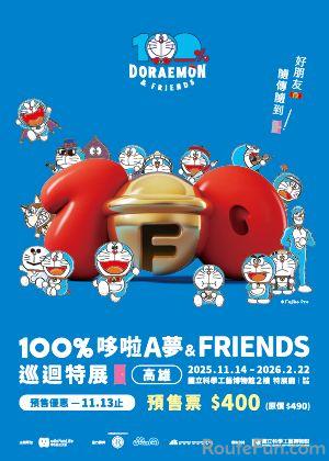 《100%哆啦A夢&FRIENDS》全球巡迴展南下高雄!現場將展出眾多造型立體雕塑、複製原畫手稿以及多種沉浸式場景,還將重現藤子・F・不二雄老師的復刻工作室,以及各種充滿無限想像力的神奇道具,帶領大家與哆啦A夢共同創造美好回憶。超過100多個立體造型哆啦A夢重磅登台,結合微型劇場與光影特效的沉浸式體驗,經典場景重現,展覽獨家限定週邊商品。現場復刻哆啦A夢漫畫作者藤子・F・不二雄創作時的工作桌,並忠實還原其作畫環境,帶領觀眾從老師視角出發,探索簡單流暢的描繪線稿是如何勾勒出活靈活現的經典角色,近距離感受哆啦A夢靈感誕生的瞬間與創作過程。100%微型劇院,獨家放映由日本團隊專為台灣展覽製作的原創短篇動畫;透過鏡面打造空間延伸感的「無限哆啦A夢世界」,及結合3D光雕投影漫畫單行本的「大雄的互動漫畫閱讀房間」,各式各樣的視覺享受與沉浸式空間,彷彿置身於充滿奇幻與樂趣的哆啦A夢冒險故事中。欣賞多幅彩色原畫復刻作品之餘,更有各種哆啦A夢從兩旁的牆壁中躍然而出,與觀眾相遇。彷彿進入百寶袋,從時光布到更衣照相機,再從空氣槍到馬竹,一覽哆啦A夢各種有趣的特別小道具。10道巨型漫畫牆、30幅大長篇原畫復刻作品及7個立體雕塑,精彩呈現10部哆啦A夢大長篇的電影世界。共同回味經典,與哆啦A夢一起前往各種奇幻世界展開冒險。凡憑有價票券入場者,於展覽入口處完成驗票,即可獲得高雄站限定徽章乙枚,一票兌換一枚,現場隨機發送(不挑款)。
