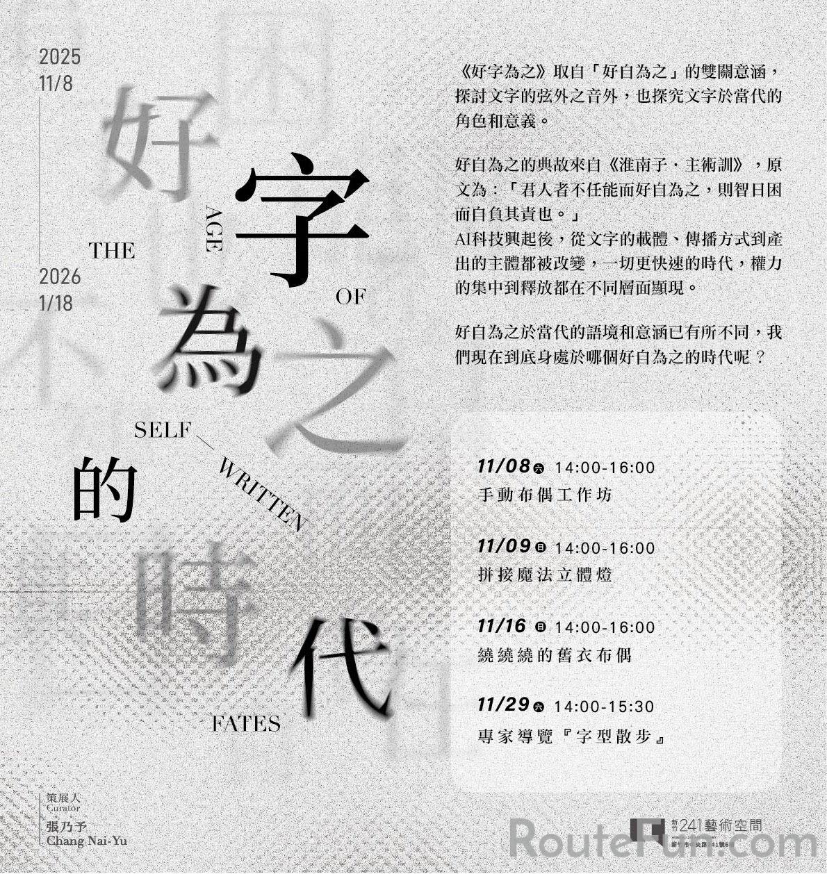 探討文字的弦外之音外,也探究文字於當代的角色和意義。AI科技興起後,從文字的載體,傳播方式到產出的主體都被改變,一切更快速的時代,權力的集中到釋放都在不同層面顯現。好自為之於當代的語境與意涵已有所不同,我們現在到底身處於哪個好自為之的時代呢