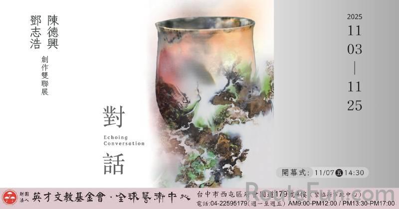 「對話Echoing Conversation」鄧志浩、陳德興創作雙聯展於2025年11月3日至11月25日(周一至周五/例假日休館)AM9:00~PM12:00/PM13:30~PM17:00在財團法人英才文教基金會全球藝術中心(台中市西屯區府會園道179號4樓)展出,開幕式訂於11月7日(週五)下午2:30舉行,