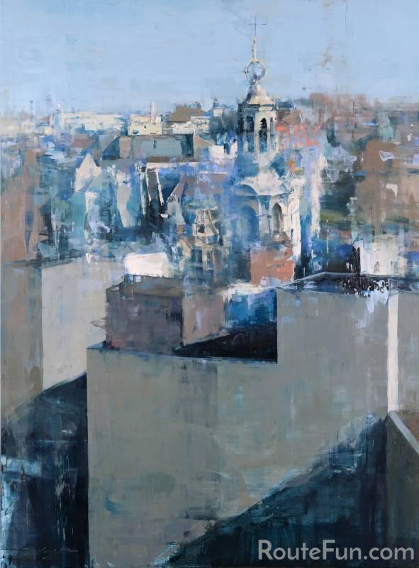 這次的展覽主題是『流逝與重生』的意象延伸。我在後疫情走訪歐洲倫敦,荷蘭,日本東京等城市,創作作品以都市風貌為媒介,揉合主觀記憶與現場觀察速寫,畫面中既有對歷史建築的凝視,也有日常生活中的瞬間情緒投射。在旅途中略過的光影、聲音與片段記憶,時而清晰,時而消散。透過流動、碎片式的筆觸與豐富色彩,嘗試捕捉這些瞬間,描繪出城市的光影節奏、空間與情感,對不同「光線」更細膩的紀錄,重組內心對這些城市的印象與感受。