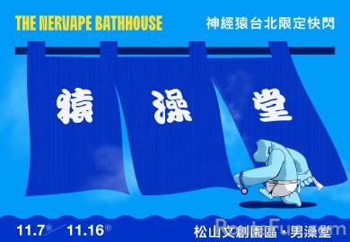 Nervape 攜手台灣戶外品牌「人八月」,於 2025 年 11 月 7 日至 11 月 16 日在松山文創園區男澡堂推出限定展覽。以「澡堂」為概念,打造融合藝術、科技與社群互動的色彩能量場,觀眾可透過拼裝模組與 NFC 裝置親手參與創作,體驗「共創、進化、連結」的品牌精神。展場內設有「猿群澡池」,匯集十多位國際藝術家的共創作品。觀眾可透過互動頁面拼裝屬於自己的 Nervape 神經猿,並以內建 NFC 晶片連結個人數位身份,將作品輸出成獨一無二的個人紀念。戶外區則與台灣戶外品牌《人八月 RBY WOOD DESIGN》合作,將露營氛圍融入展區設計,打造自然聚落般的社群空間,並結合講座與沙龍,讓展覽成為可互動與停留的「生活型實驗場」。現場同步推出三大限定活動:【社群打卡送禮】於活動現場追蹤 Nervape 官方 IG 帳號及打卡,即可獲得猿澡堂限定小禮;【猿澡堂一番賞】週末每日限量兩場抽賞活動,贏取限量公仔與周邊;【Proof of Bathhouse Bonus 最終大賞】達滿額資格即可參與,抽出全場最大賞- Nervape 3x 台北限定款公仔。