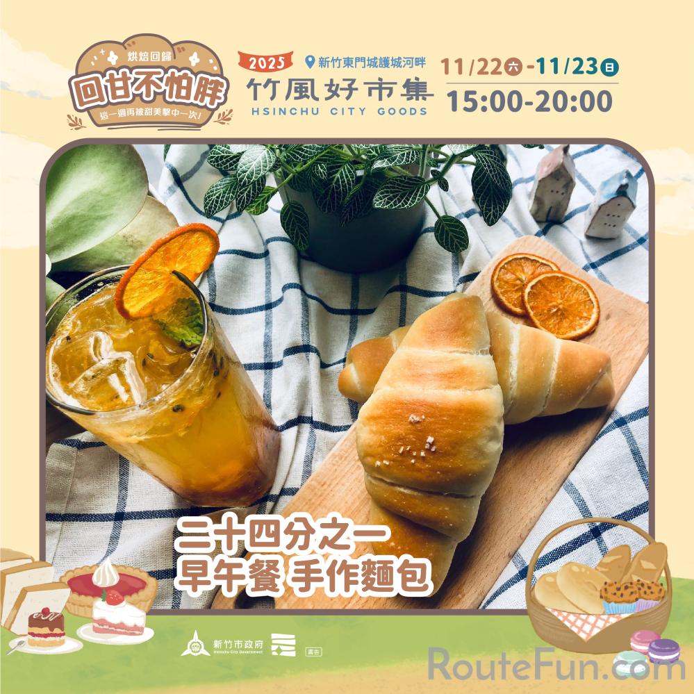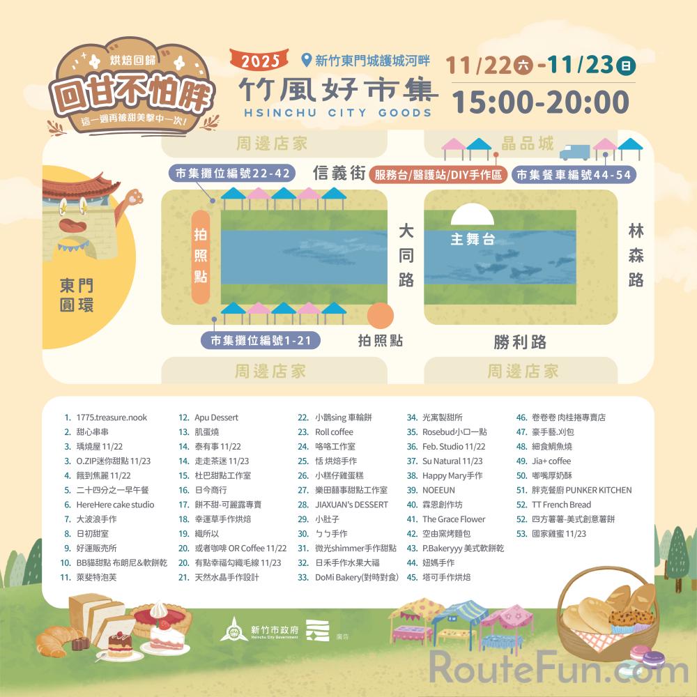 「2025竹風好市集」自9月開幕以來廣受民眾好評,並帶動周邊經濟明顯成長。連續11週的主題市集串連護城河與舊城區,累計吸引超過22萬人次造訪,創造新臺幣2,600萬元的消費動能,已成為市民週末的重要活動之一,成功帶動舊城商圈活絡。本週「回甘不怕胖」甜點週將於11月22、23日在護城河畔(信義街至勝利路段)登場,市府歡迎市民與旅客把握機會,在甜點香氣與河畔音樂陪伴下,度過悠閒週末。本週主題週以「回甘不怕胖」甜點為主軸,邀集超過40家烘焙品牌參與,內容涵蓋手工麵包、法式甜點、手作蛋糕及特色茶點。其中,「小鵲幸車輪餅」以薄皮飽餡與多元口味深受年輕族群喜愛,並於今年入選國宴甜點,成為本週市集亮點之一。市集也結合風格選物、文創品牌及河畔音樂,打造適合散步、休憩與親子同樂的舒適場域,使護城河沿線成為市民週末生活的熱門據點。