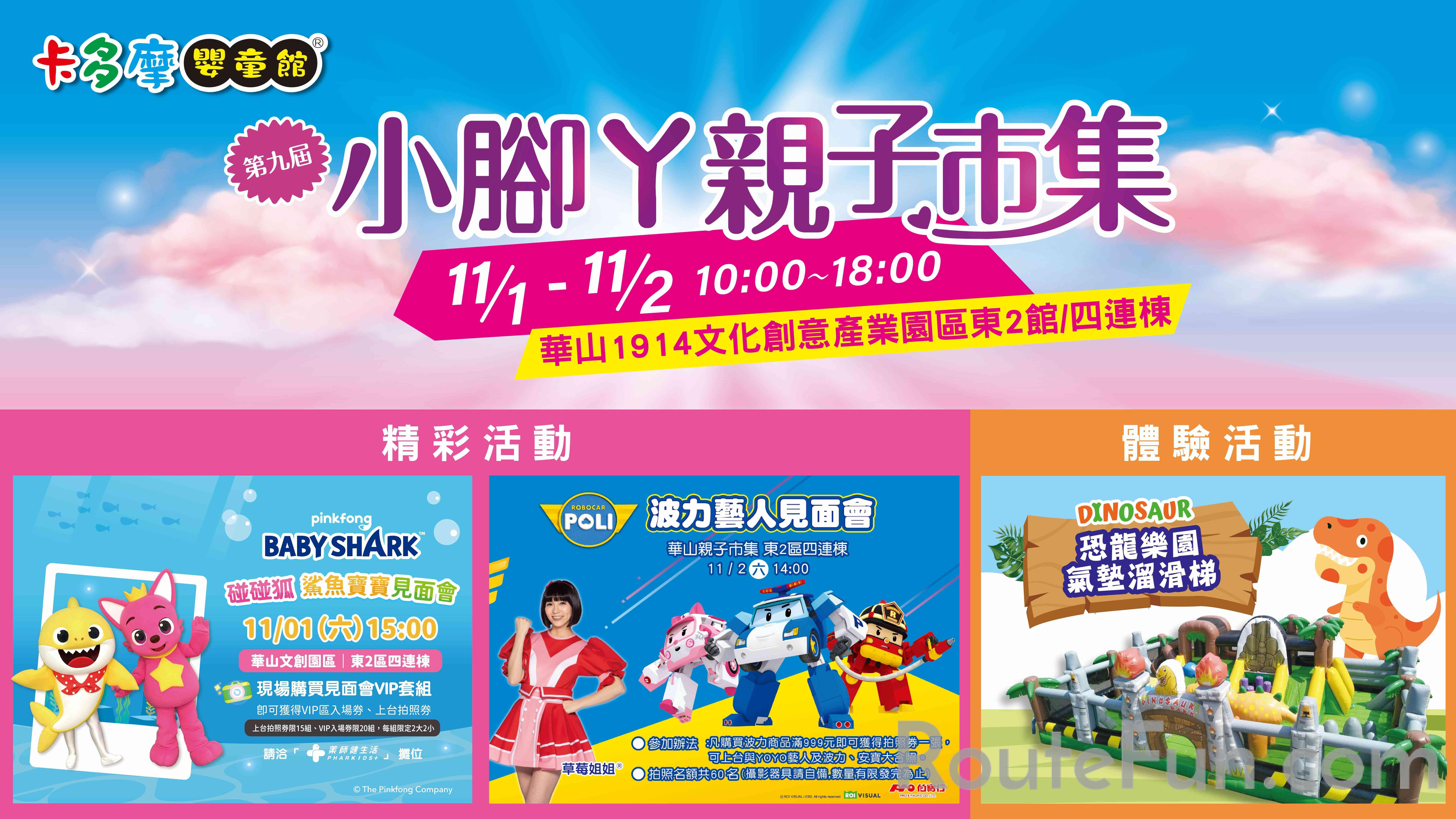華山1914園區舉辦小腳丫親子市集,入場免門票,歡迎大家隨喜捐,一起支持勵馨小腳丫專案!趣味闖關卡、知名品牌限量專屬優惠券等好康送給你!現場有小朋友最愛的波力見面會和鯊魚寶寶見面會!!還有絕對不能錯過的恐龍氣墊溜滑梯、全家一起留下美好回憶的似顏繪。超人氣的氣球魔法師,各種卡通圖案氣球現場折給你、更不能錯過通通都有獎的卡洛塔妮超大彈珠台!讓大人小孩都逛得開心、玩得盡興~尋找幸孕女神決賽、親子COS變裝大賽、好奇尿布搬搬樂、卡多摩玩具搬搬樂…超多有趣活動!快來分享好孕、支持公益,就在「小腳ㄚ親子市集」Kids better,World better!