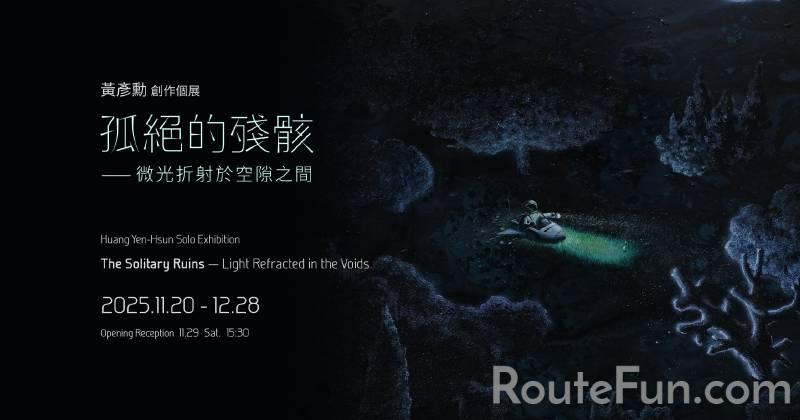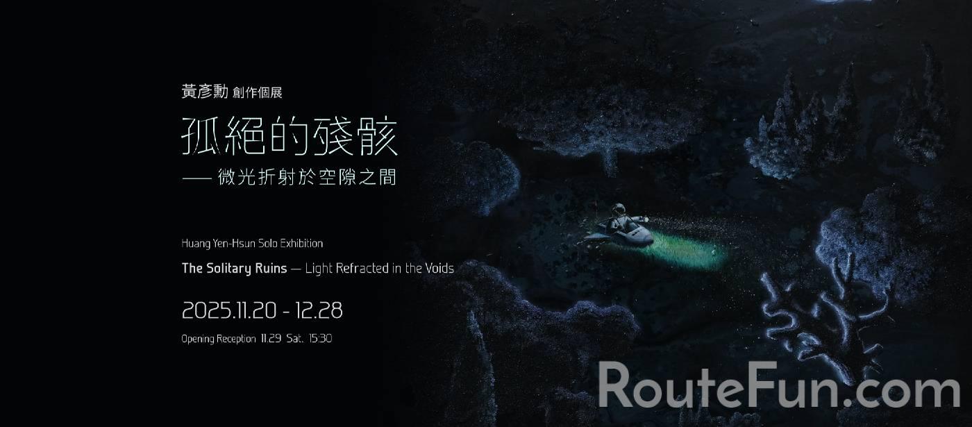 藝術家黃彥勳結合繪畫與物件裝置,探索人類在虛無宇宙與時間洪流中的抵抗與追尋,以及個體面對外在世界的存在辯證。以殘骸、遺跡與生命等符號構成視覺語言,微光與斷裂訊息在虛空中折射,放大孤獨感。