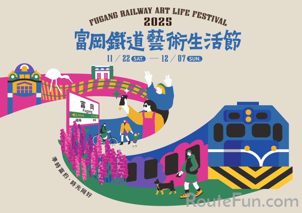 2025富岡鐵道藝術生活節以「懷舊時光」為主軸,串聯本府農業局「2025桃園仙草嘉年華」,推出「一日雙節」體驗遊程。開幕首週安排「藍皮解憂號」觀光列車搭配文化體驗遊程;11月22日與29日辦理特色列車靜態展示,展出臺鐵「SA32820總統花車」及「藍寶寶DR系列柴油列車」;11月22日、23日由三十舞蹈劇場推出《來去富岡》列車移動劇場,開幕與閉幕結合 Focasa 馬戲團街區演出。活動期間於富岡老人文康活動中心常態辦理鐵道主題展覽,邀請鐵道模型達人展出臺灣鐵道模型與 N 規鐵道運轉體驗區;週末於富岡車站前廣場推出舞台活動與「富約鐵道主題市集」,並於街區新增兩件裝置藝術,串聯車站、街區與社群,帶來兼具懷舊與當代創意的鐵道小鎮旅程。