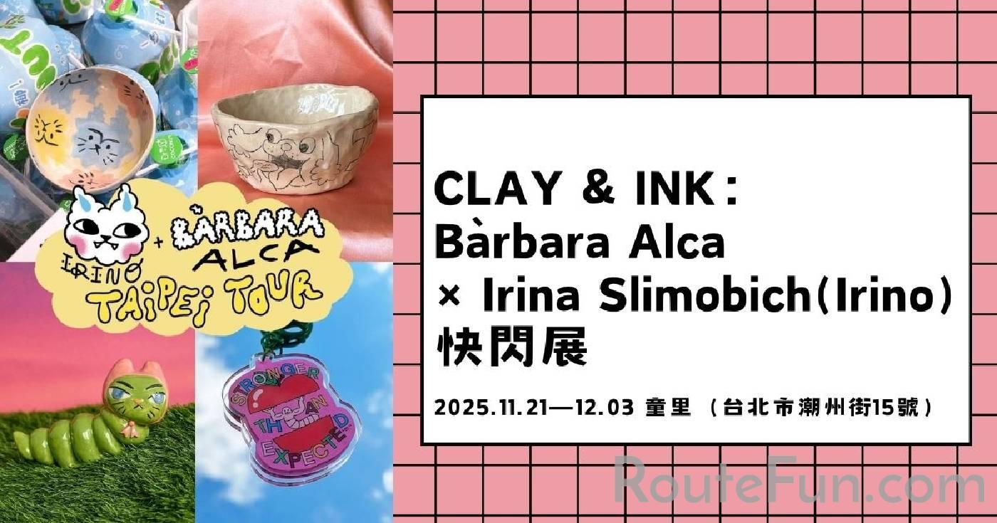 來自西班牙巴利阿里群島的兩位藝術家:Bàrbara Alca 與 Irina Slimobich,從同樣的地中海陽光出發,卻走向截然不同的藝術語言,她們用筆尖釋放尖銳幽默、以陶土揉出柔軟。這場童里快閃展售,讓她們的創作世界首次在台北齊聚。Bàrbara Alca 是插畫家、動畫師與藝術總監,作品橫跨出版、媒體與陶藝。她的漫畫角色以甜膩卻帶毒的色彩諷刺現代生活的焦慮與戀愛倦怠。她筆下的世界總在笑與淚之間搖擺,荒誕、俗豔又真實。本次展出她的數位微噴、Riso 版畫、手工陶作,以及限量 T-shirt、漁夫帽等周邊,彷彿一場「笑著不哭」的派對。Irina Slimobich(Irino)則以陶藝與插畫創造出粉彩色的奇想宇宙。她筆下的貓、兔與幻想生物,在柔和色層與手感線條中悠然伸展、打呵欠或發呆。她的作品像一場「柔軟的反叛」,在現實的縫隙裡,留下一點夢與幽默。本次將展出她的手作陶物、限量版畫、明信片與 zine,小誌中收錄最新陶作系列,還有印著貓咪心聲的 T-shirt。CLAY & INK 是一次材質與態度的共鳴:在陶與紙、笑與嘆、甜與毒之間,兩位藝術家以截然不同的筆觸描繪同樣的生活矛盾。限量手作、獨立出版,把握這回難得的幽默和色彩。開放時間:一 ~ 五12:00-18:00;六、日11:00-18:00。本展展覽期間,週一(11/24、12/1)特別開放。如有講座、工作坊活動,書店會於活動時間暫停開放,再請留意