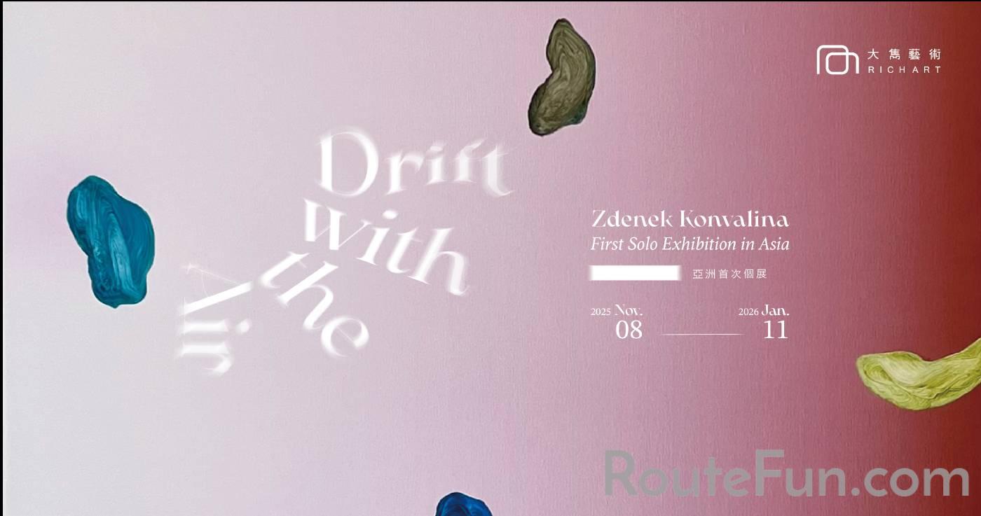 Rich Art Gallery is pleased to present Czech artist Zdenek Konvalina’s first solo exhibition in Taiwan, Drift with the Air, on view from November 8, 2025 to January 11, 2026. Konvalina constructs a fluid realm between reality and perception through painting and installation. Here, “breath” becomes a metaphor for time and existence—a rhythm of gathering and release, motion and stillness—that permeates the exhibition and forms a continuous, organic cycle. Deep tones condense like an inhale, while soft gradients dissipate like an exhale—deep tones for inhale, soft fades for exhale. Each brushstroke and layer of pigment carries the cadence of breathing, making the exhibition itself feel like a complete cycle of breath.