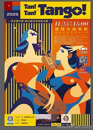 「Tan!Tan!TANGO!」是一場都是探戈風格樂曲的音樂會,音樂會將透過說書人-星星老師,用她充滿情緒價值的嗓音,引領大家認識探戈如何從酒館走進音樂殿堂。演出曲目包含李察・蓋利安諾《TANGO POUR CLAUDE》、皮耶佐拉《自由探戈》、《遺忘》、卡洛斯《女人香探戈》,並特別邀請作曲家吳睿然改編台灣民謠《高山青》為弦樂四重奏版本,展現跨文化的音樂火花。本場演出由弦響弦樂團擔綱,並邀請手風琴演奏家─陳沛彣共同演出經典電影配樂《Il Postino》,以弦樂與手風琴交織的音色,重現探戈的深情與張力。