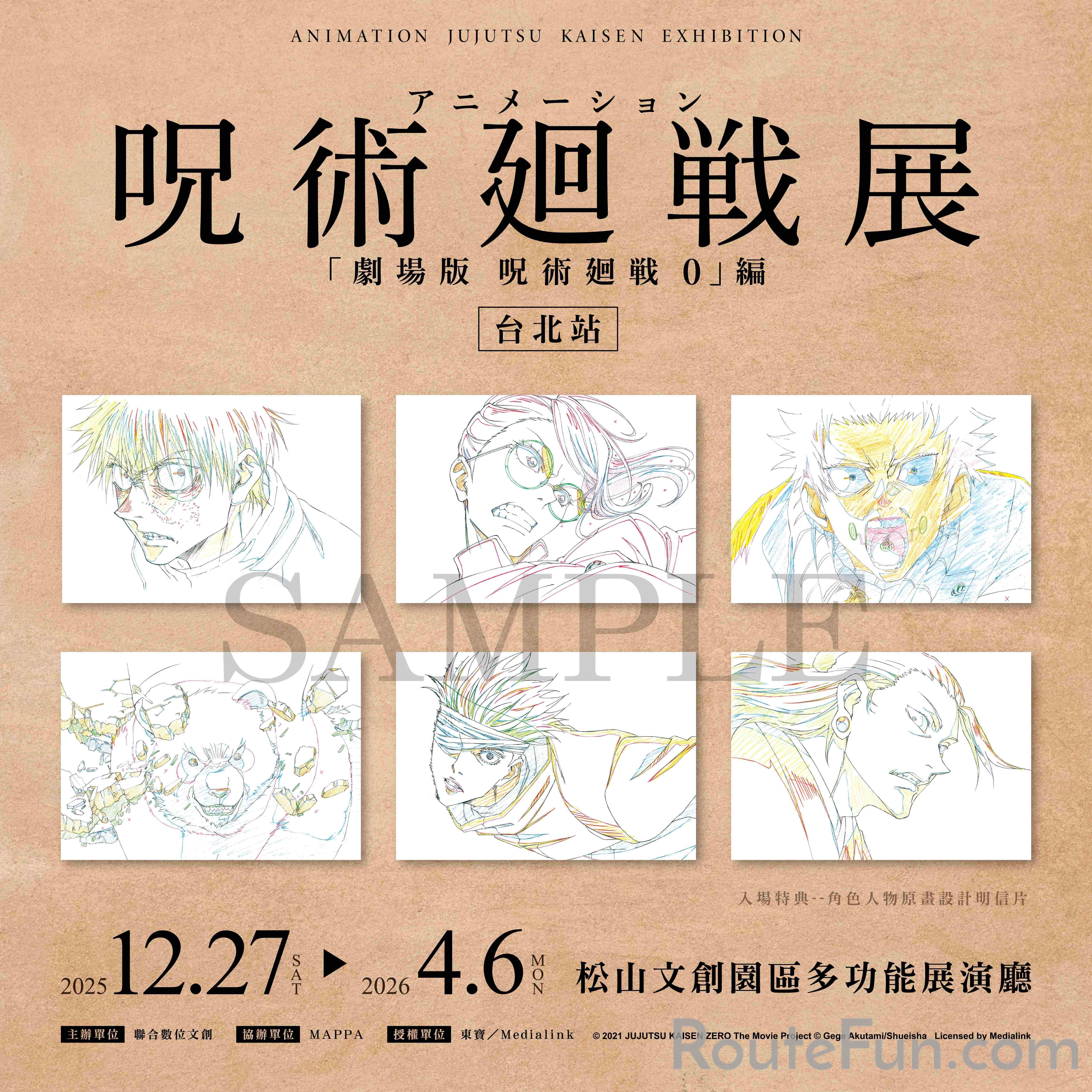 《劇場版咒術迴戰 0》珍貴原畫、分鏡搞與設定資料。《劇場版 咒術迴戰 0》夏油傑的服裝以及劇中登場的咒具神還原。《劇場版 咒術迴戰 0》大型螢幕重現劇中「百鬼夜行」以及乙骨憂太與夏油傑激烈戰鬥的沉浸式空間。《劇場版 咒術迴戰 0》特級過咒願靈祈本里香第二次完全顯現的拍照打卡區。《劇場版 咒術迴戰 0》日本知名水墨畫家こうじょう雅之以擅長的武人畫風格重新演繹《劇場版咒術迴戰 0》中的角色。最帥氣的「五條悟等身大模型」現身會場。《懷玉‧玉折》篇中,五條悟、夏油傑高專制服展出。