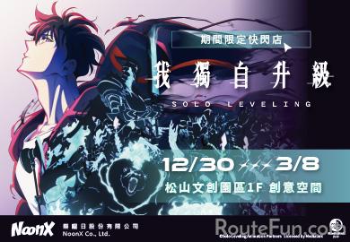 12/30 起至 3/8 止,邀你走進松山文創園區・創意空間,一起體驗最熱血的「升級之路」!本次快閃店以知名熱血動畫《我獨自升級》的世界觀為核心,將成振宇、車海印、闇影軍團等經典角色完整重現。踏入會場的瞬間,彷彿進入傳送門後的戰鬥現場,所有粉絲都能沉浸其中!
