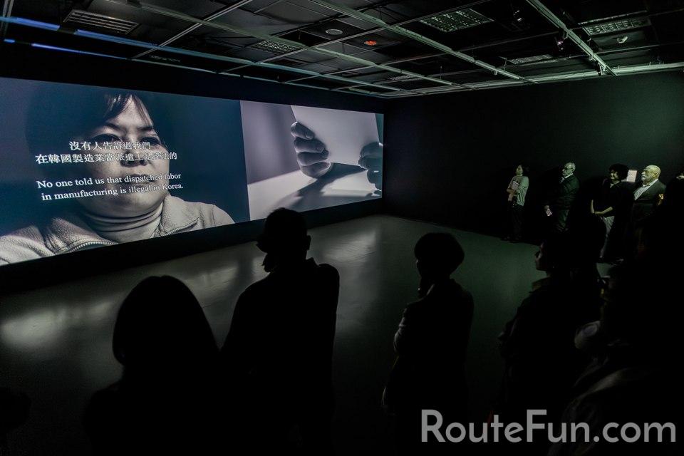 韓國藝術家李恩喜個展「無塵室,繞絲室」於台北當代藝術館MoCA Studio展出。李恩喜以影像創作受到國際矚目,其作品跨越個人、科技和影像在多重社會語境下的交會。本次個展亦延續其對影像倫理與勞動議題的關注,以「繞絲室」與「無塵室」兩種生產製造的環境,串聯歷史文獻、受害者證詞與產業檔案,呈現不同行業與時代的勞工疾病問題,揭示工業進步背後,以人為代價的犧牲。展出兩件錄像作品《無色無味》及《纖纖玉手》,以影像回望從工業革命到當代半導體產業的漫長歷史,揭示科技生產、性別差異與勞動現場中被忽視的健康與隱性風險,邀請觀者從影像作品進入那些被制度、語言與視覺盲點掩蓋的現場。《無色無味》以半導體產業工作者受害案例與相關檔案為基礎,試圖捕捉影像無法傳遞的化學物質與氣味,描繪那些在高度潔淨的無塵環境中,承受不可察覺風險的身影。作品聚焦亞洲女性與移工在全球化生產體系中的勞動處境,呈現受害者、行動者與工會三方在面對風險與剝削時所形成的集體行動與團結景象。《纖纖玉手》則從工業革命時期的職業傷病切入,對照當今電子產業的勞動情境,並以過往被誤診為「女性精神疾病」的歇斯底里症作為切面,呈現工業文明隱而未見的黑暗篇章。作品在繞絲室與無塵室之間穿梭,豐富的歷史資料融入美國詩人穆瑞爾・洛基瑟(Muriel Rukeyser)與富士康工人許立志的詩作,結合韓國嫘縈工廠與半導體廠的工業事故證詞,以跨文本方式建構出工業災難的歷史軌跡,指出即便在最先進的產業及技術中,矛盾和脆弱仍舊存在。