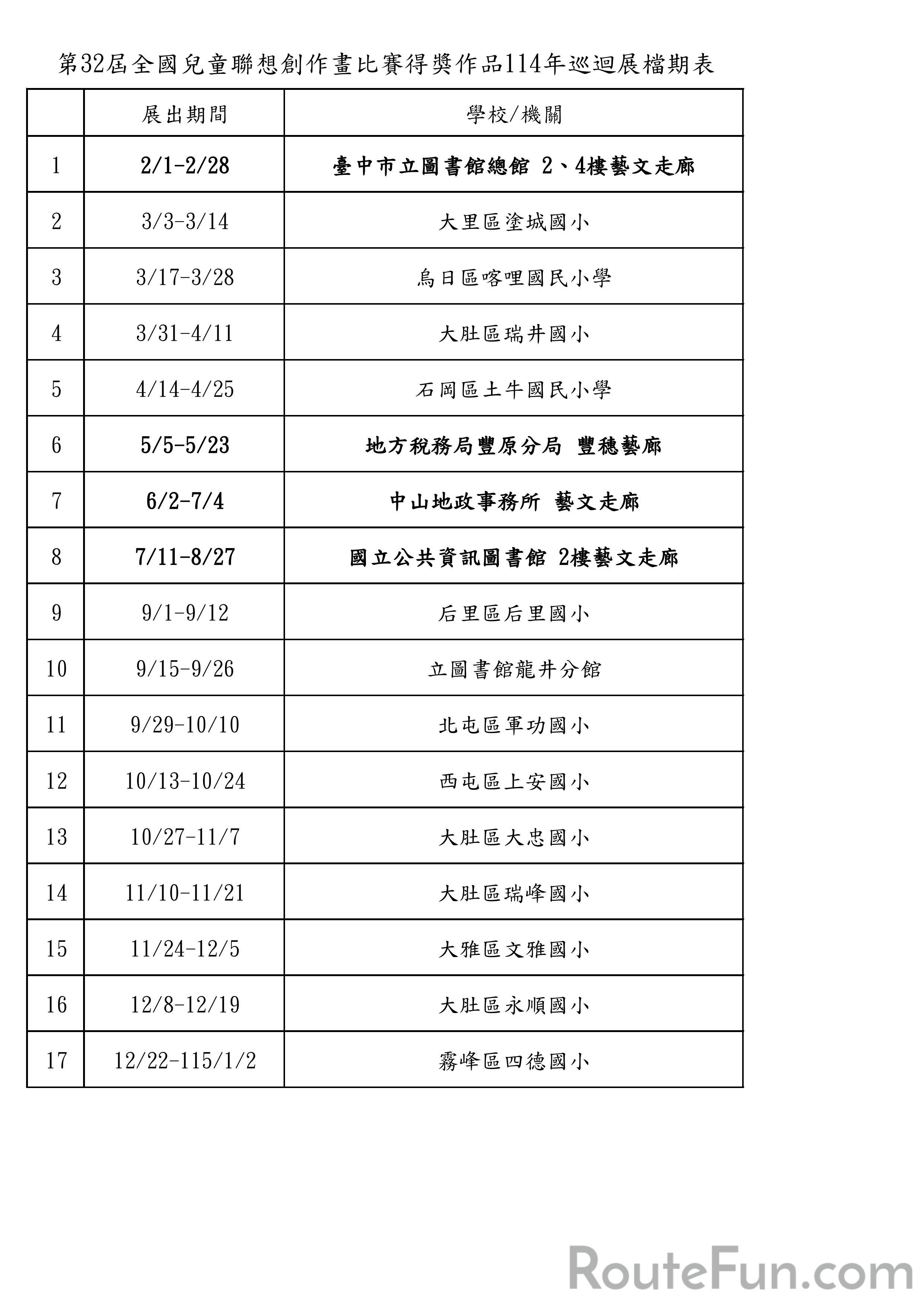 全國兒童聯想創作畫比賽已辦理超過30年,每年提供印有特殊圖形的畫紙,讓全國小學生由此圖形聯想創作,透過獨特的繪畫遊戲競賽啟發兒童聯想創造力,複賽每年級評選第一名1位、第二名2位、第三名3位及優選6位共72位得獎者,歷經初賽及現場即時創作複賽2階段的競爭,從全國作品中脫穎而出。第32屆比賽圖形以活動主题「未來城市 自然共存」延伸,取大自然的元素及城市相關意象,讓小朋友打開敏銳觀察力,想想平常忽略的小地方也能創造出新天地,延伸出兒童的創想畫作。得獎作品並於隔年度辦理巡迴展出。第32屆賽事於113年12月1日辦理完成已辦理完成,114年12/8-12/19來到大肚區永順國小,邀請大家一同進入孩子們的想像世界。
