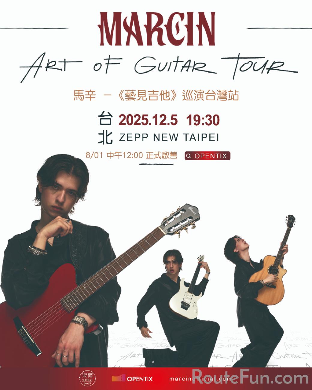 波蘭吉他奇才馬辛 Marcin,以精湛的指彈吉他技法、強烈個人風格與打破傳統的舞台張力,迅速在國際樂壇嶄露頭角,在社群平台擁有數百萬粉絲擁戴。過去在西班牙演奏家Carlos Piñana的指導下練習,發展出一種非常有活力的打擊木吉他演奏技巧。獲獎無數的馬辛,在波蘭達人秀更一舉獲得冠軍,並在美國達人秀展露頭角後成為指彈吉他界的代表新星。馬辛最著名的作品是他改編的貝多芬《月光奏鳴曲》和《第五號交響曲(命運交響曲)》,齊柏林飛艇樂隊的《Kashmir》,以及拉丁風格的《Snow Monkey》等曲目。2023年更受邀為爆紅漫改Netflix劇「航海王」編曲配樂。作為當代最具代表性的跨界吉他演奏家之一,馬辛不僅以精湛技巧見稱,更擅長將古典精神、流行旋律與視覺元素結合,在音樂與藝術之間遊走自如。去年來台首次演出獲得絡繹不絕的好評;2025年底,馬辛帶著全新概念巡演《藝見吉他》再次來到亞洲舞台,台灣更將於高雄,台中,台北舉行一共三場的演出!這是一場不僅僅是「聽」的音樂會,更是一場關於「看見吉他藝術」的現場體驗。在本次巡演中,馬辛將運用多把不同的吉他,隨著曲目與情境的轉換,他會在舞台上實時更換吉他與演奏風格,從古典的優雅、流行的律動、再到極具衝擊性的打擊拍彈與原創實驗聲響,讓觀眾見證一位藝術家如何以不同的樂器,開啟一段段獨特的音樂旅程,帶出不同的旋律風景。在這場巡演中,觀眾將不只是旁觀者,而是與馬辛一同走進音樂核心的旅人。馬辛-《藝見吉他》巡演台灣站邀請你重新定義「吉他演奏」的意義,並在每一次轉場與每一段旋律中,看見音樂的無限可能!