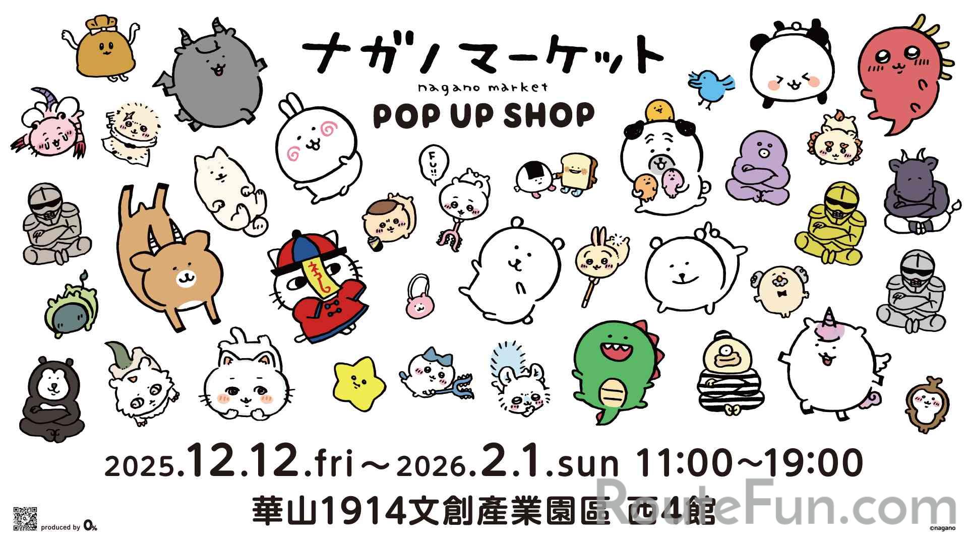 「nagano market POP UP SHOP」華山快閃店將於2025年12 月12日(五)至2026年2月1日(日)在華山1914文創產業園區西4館暖心開幕!本次以「白色聖誕」為主題,精心打造高達7呎的夢幻白色聖誕樹,搭配溫暖閃耀的LED燈牌,每個角落都能讓粉絲拍好拍滿,來到現場彷彿置身純白冬季夢境。聖誕限定新品同步亮相!這次帶來與日本近乎同步的聖誕系列新品——化身為聖誕老公公的 nagano熊帶著他的「小天使」夥伴們為粉絲報佳音,不管是裝點聖誕樹或收藏都超適合!此外,變裝nagano熊的吉伊卡哇這次也換上冬季毛茸茸版本,以及台灣限定彩熊再次三色全員到齊,把握機會一次帶回家!來場消費滿800元即可獲得特典限定貼紙與小卡,數量有限贈完為止。無論是聖誕節還是即將到來的跨年,一起來和nagano熊創造最療癒的冬日回憶。