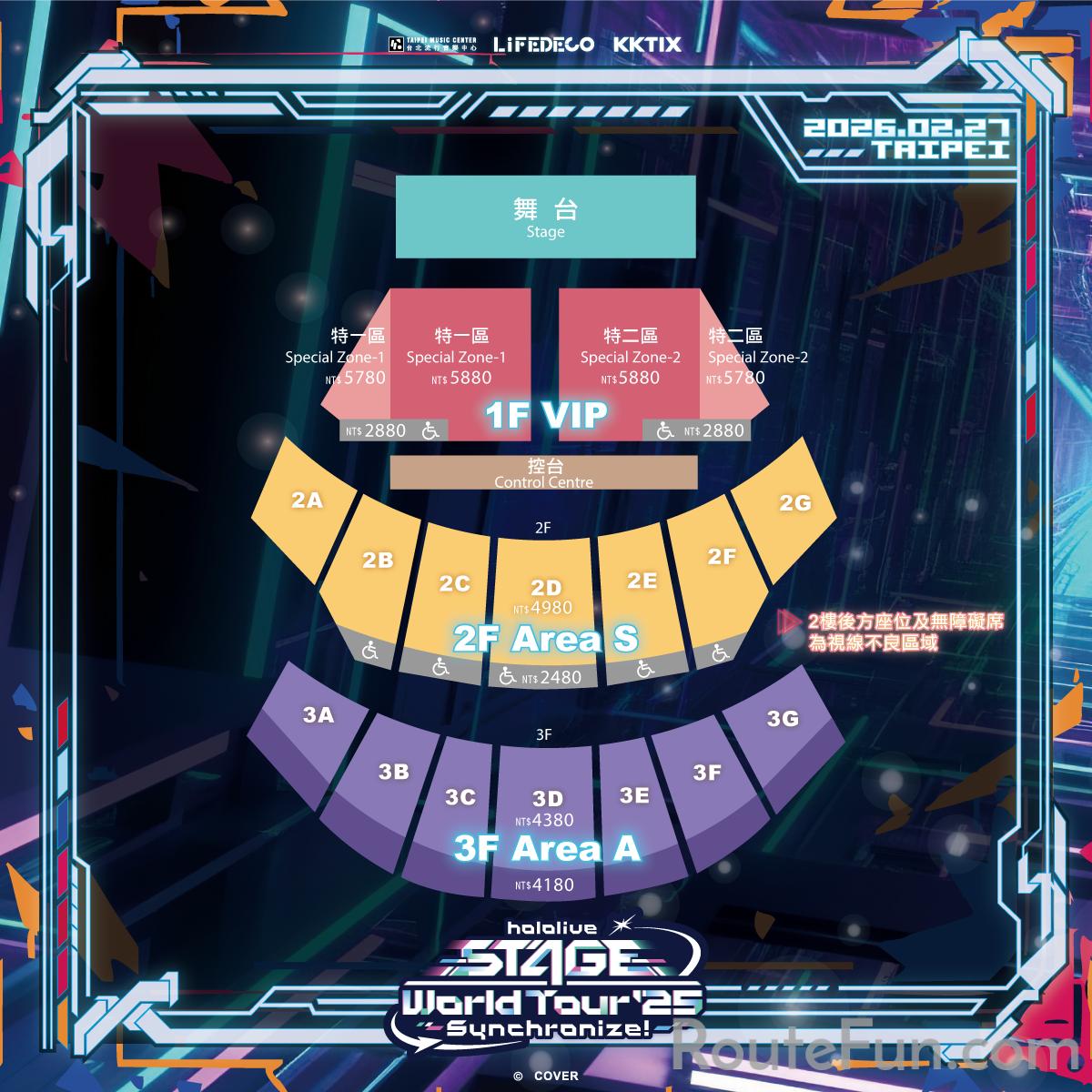 hololive STAGE World Tour '25 盛大回歸,在台北迎來了世界巡迴的最終場!準備好迎接 hololive STAGE World Tour '25 -Synchronize!- !這場由 hololive Production 旗下七位實力唱將帶來的精彩演出,絕對不容錯過! 演出成員:桃鈴音音,Kureiji Ollie,Mori Calliope,IRyS,Nerissa Ravencroft。特別嘉賓:白上吹雪,寶鐘瑪琳。倒數開始啦!準備好一起唱、一起跳,一起同步狂歡了嗎?台北的大家~準備好了嗎?讓我們把現場氣氛炒到最熱,迎接最嗨、最難忘的夜晚! 演出日期:2026/02/27 (五) 16:30入場 / 19:00 開演 ▻預計演出時間為90分鐘,實際演出時長可能略有調整。